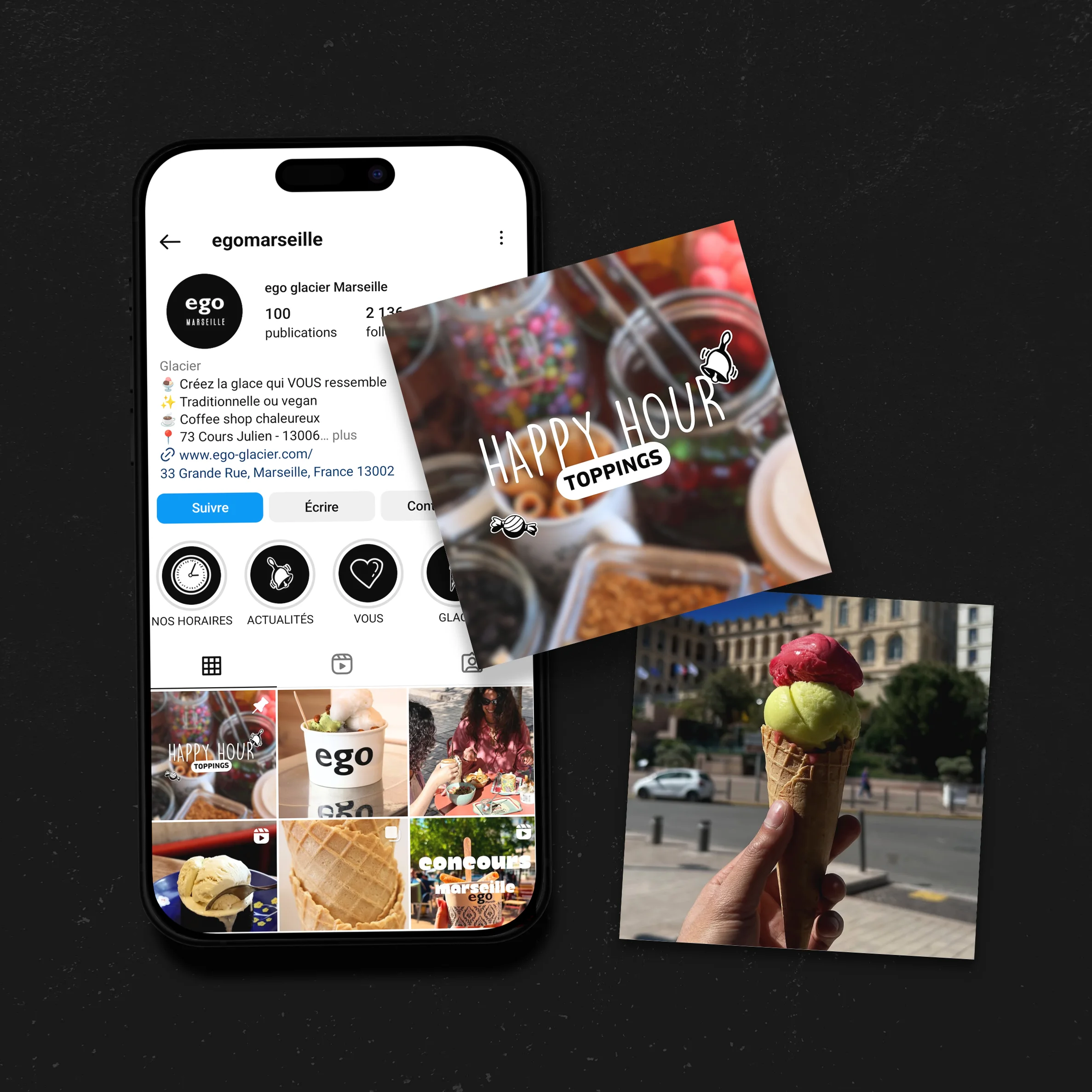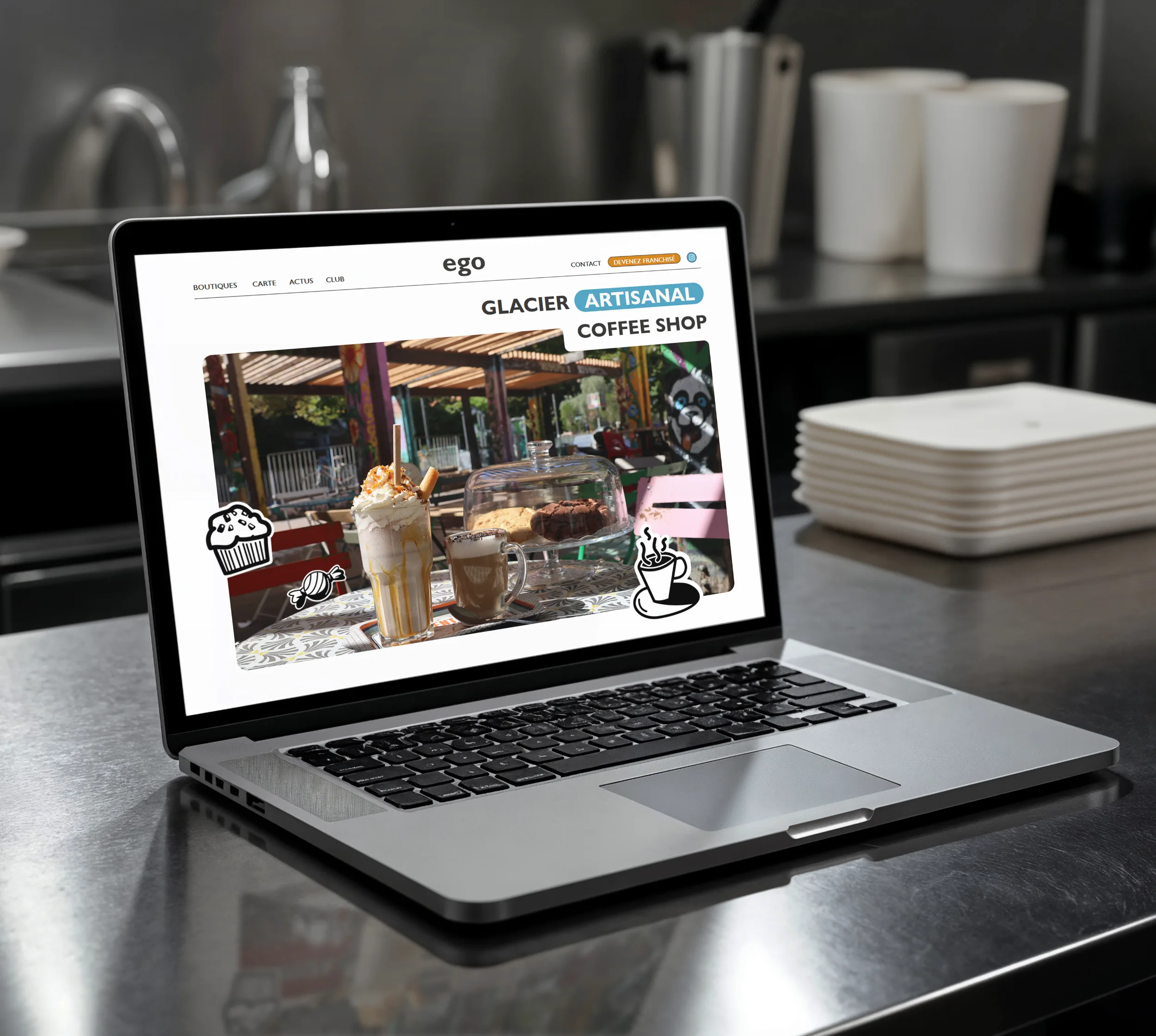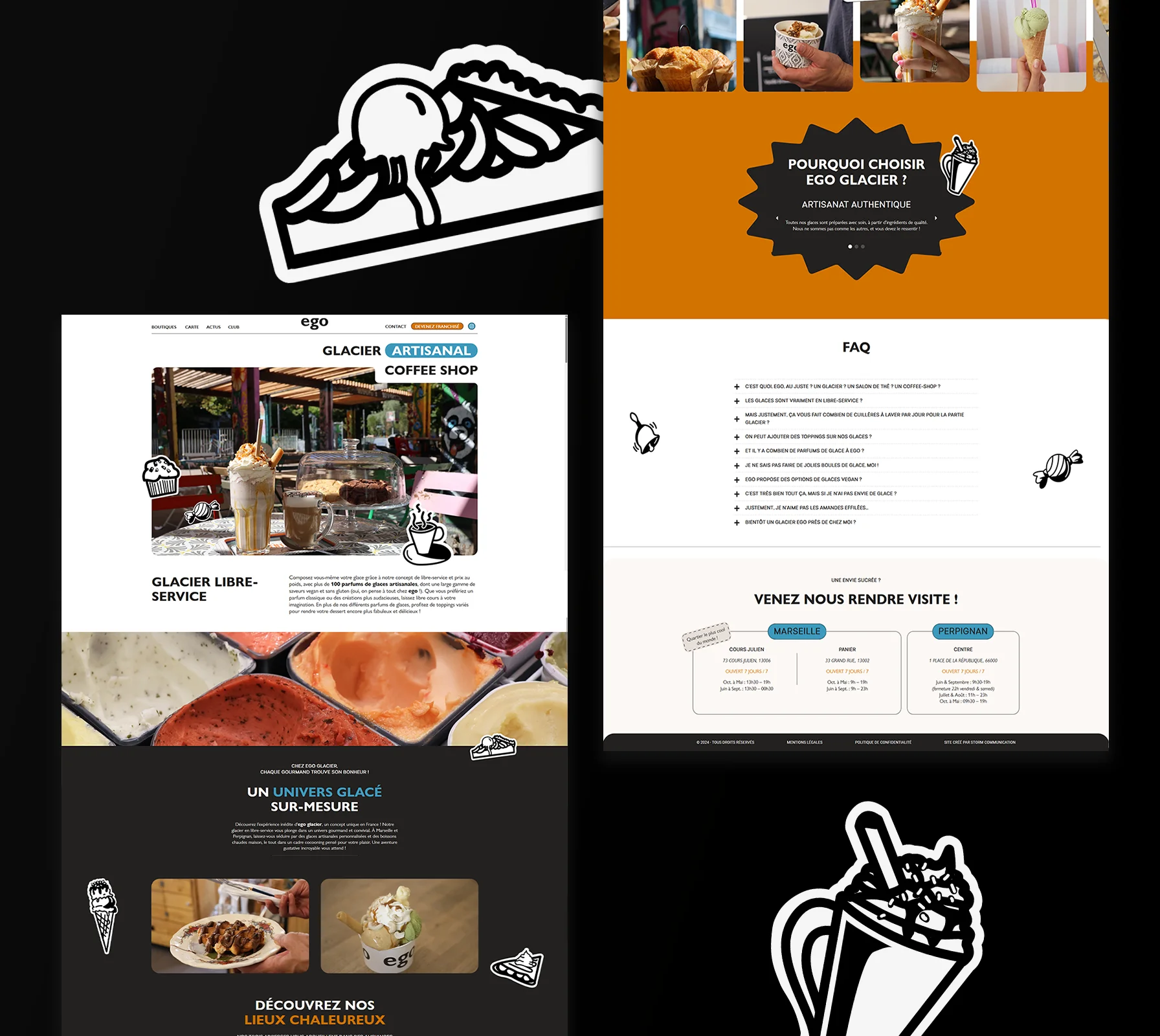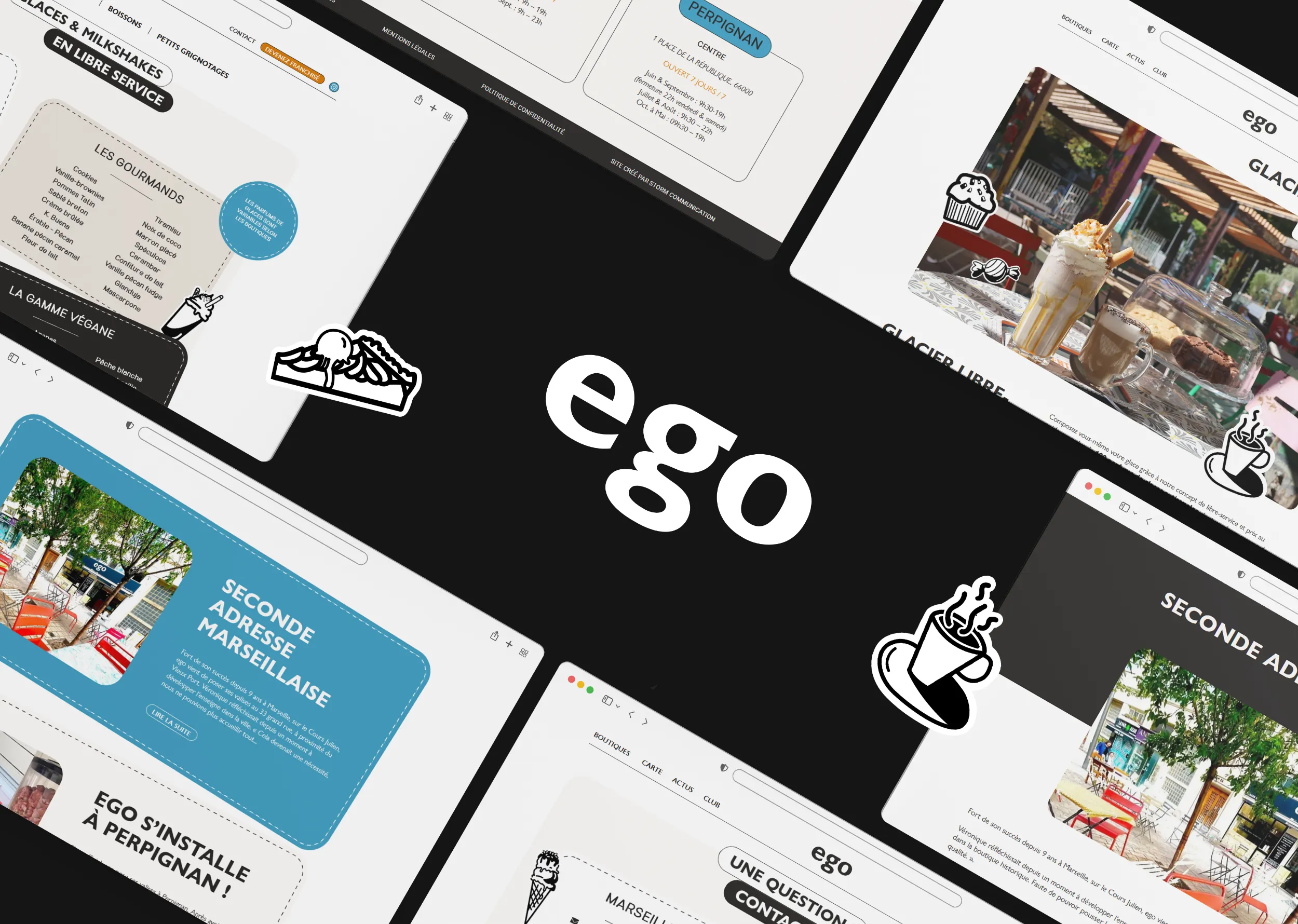 Storm Communication a accompagné ego glacier en revisitant l'intégralité de sa stratégie réseaux sociaux, en refaisant son site internet et en créant une charte graphique claire et cohérente à destination des franchisés. L'objectif était de renforcer l'identité visuelle de la marque tout en optimisant sa présence digitale pour attirer à la fois les clients et les futurs franchisés.
